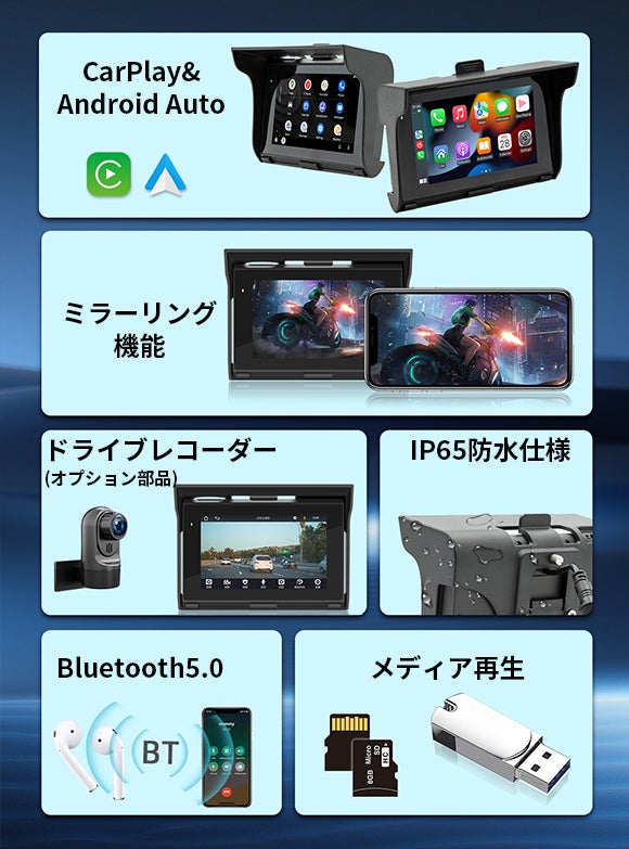 ・バイク専用ディスプレイオーディオで、CarPlay/Android Autoに対応