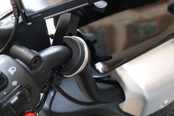 付属の取り付け装置は排気量の大きなバイクからスクータータイプのバイクなど、様々なタイプのバイクに手軽に取り付けることが可能。盗難防止機能も備えており、車にしっかりと固定すると同時に、紛失するおそれからも回避できます。