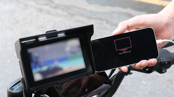 「LUPA-B5350」は有線ミラーリング機能を搭載しており、スマホの画面がそのままディスプレイ全体に表示されます。乗車したままビデオやゲームを楽しむことができます。