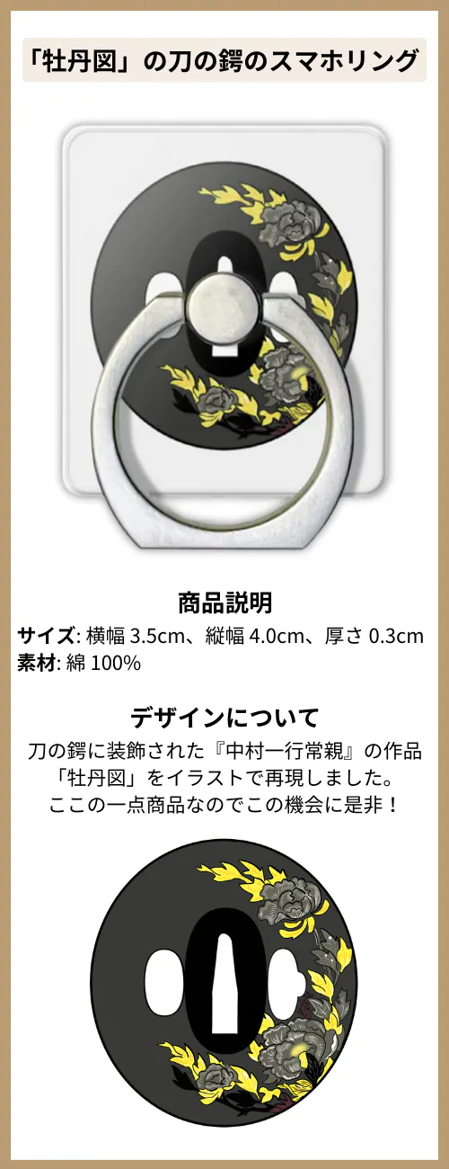 「牡丹図」の刀の鍔のスマホリング