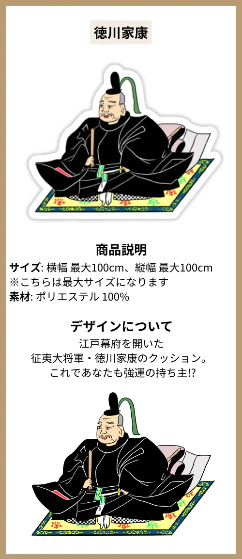 江戸幕府を開いた征夷大将軍・徳川家康のクッション。これであなたも強運の持ち主!?