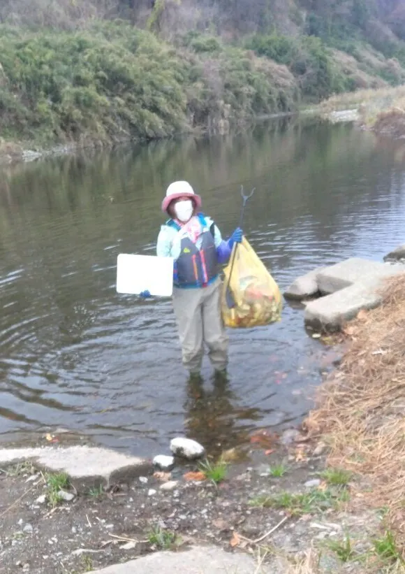 新年最初は、大栗川の0m起点(多摩川との合流点)から上流部の清掃に取り組みました。