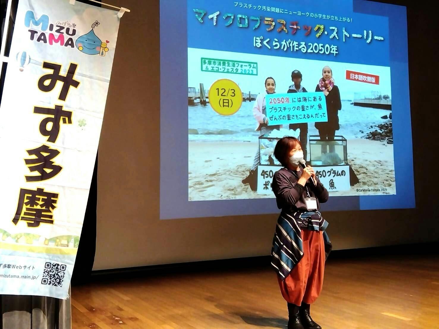 「みず多摩」は、「ペットボトルを減らしてマイボトルを携帯しよう!」という活動と共に、携帯したマイボトルが空になった時に、汲み足しができるよう「給水スポットを拡げよう!」という活動を展開していました。ごみ拾いから、1歩も2歩も先を行っている活動を知る中で、「マイクロプラスチック問題」をもっとちゃんと理解し、伝えられる人になりたい!と思うようになりました。学習を続けていき、何度か人前で話す機会を頂くようになると、みず多摩の代表を交代する話が出て、あれよという間に代表を引き受けることになりました。これが私が「みず多摩」の代表になった経緯です。