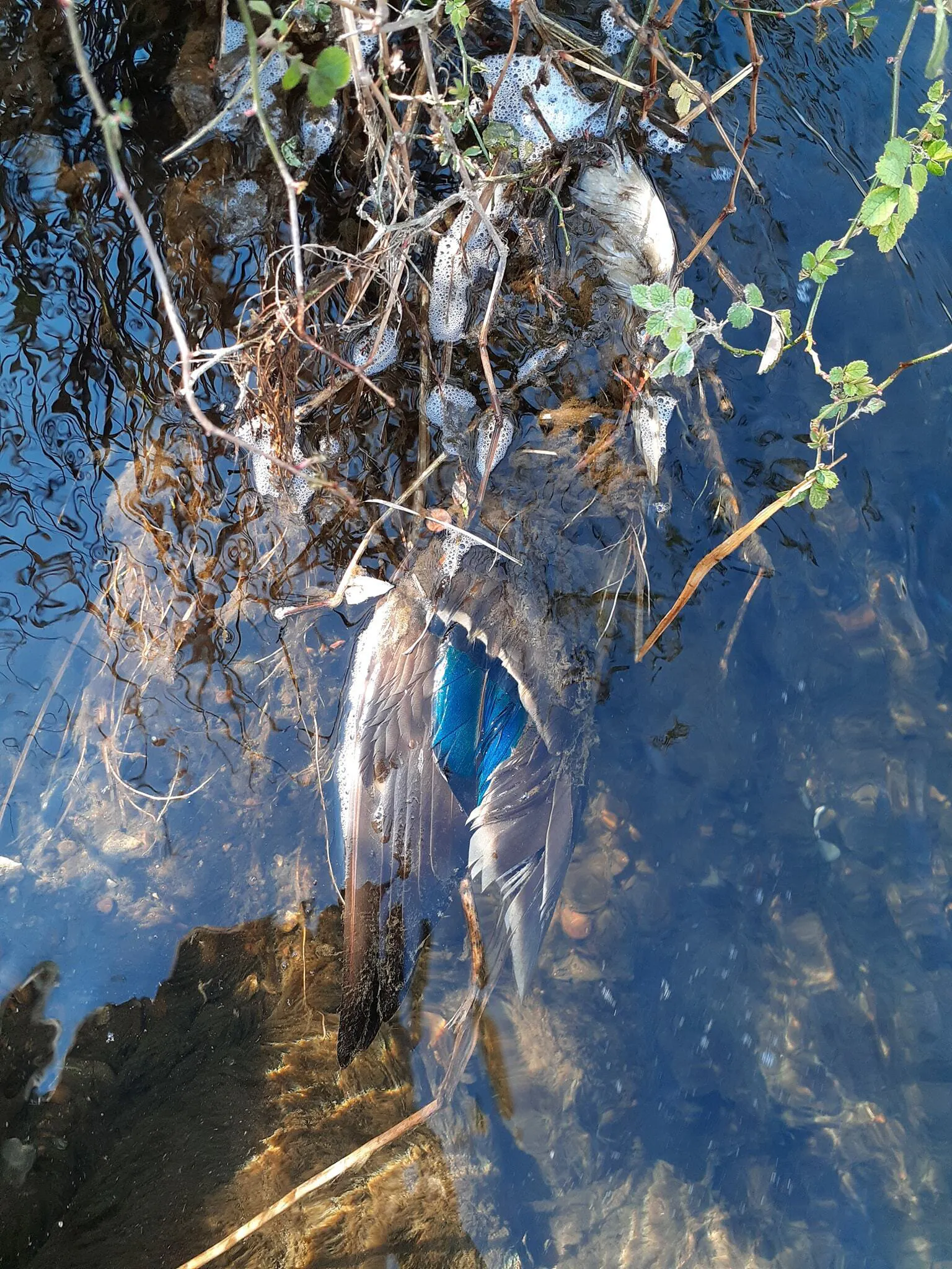 川に入るなり、目に飛び込んだのは、マガモの死骸でした。。涙