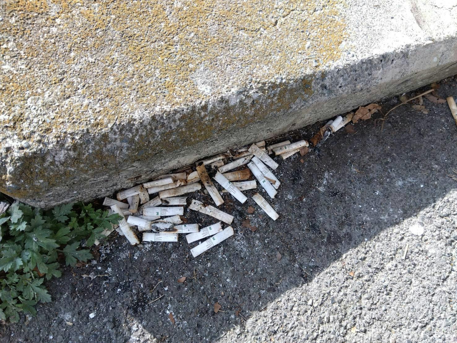 ●作業をスタートした場所の足元に、まとまってタバコが捨ててありました。この場所に、まとまったタバコをみつけたのは、これで3回目。決まった人が捨てていると推察します。
