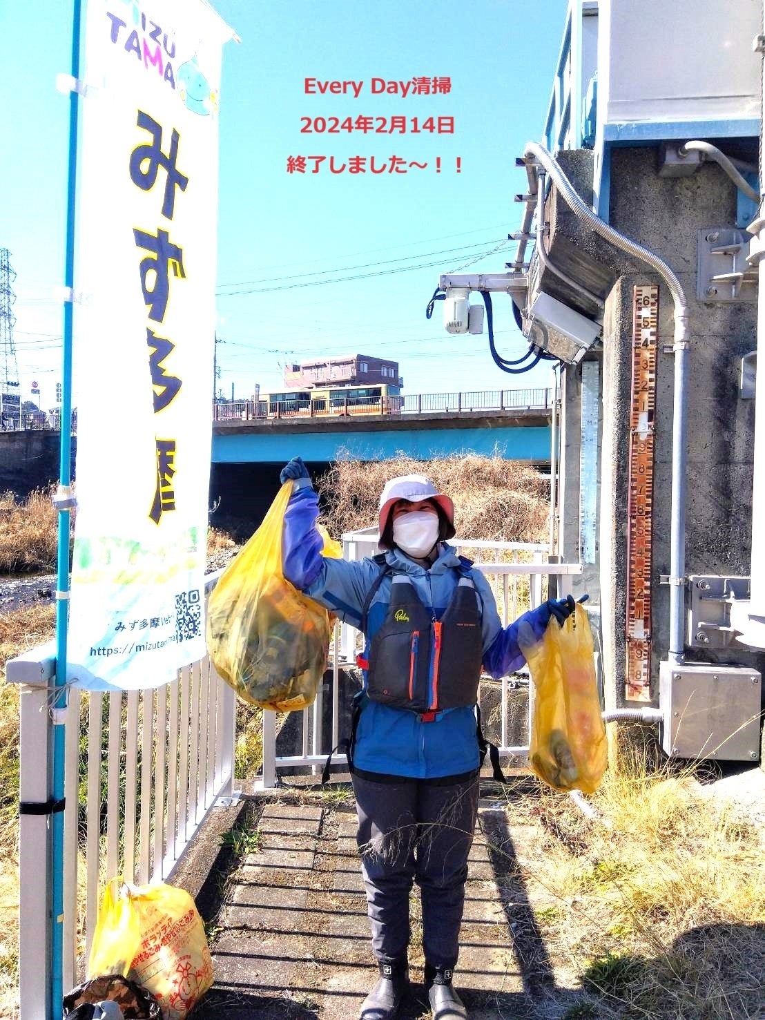 クラファンのキャンペーン清掃はこれで終了しますが、「よみがえれ、大栗川を楽しむ会」「みず多摩」は、今後も機会を捉えて、川の清掃活動を継続していきます。