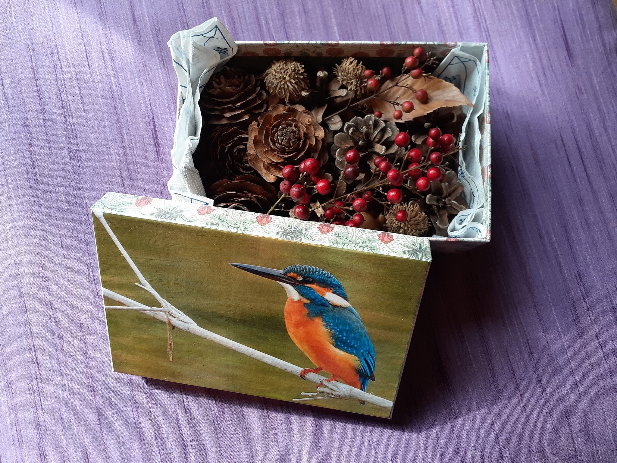 森の実セットでは、ご本人がお好きなカワセミを使ったスペシャルボックスを、代表・小山が手作りしました。