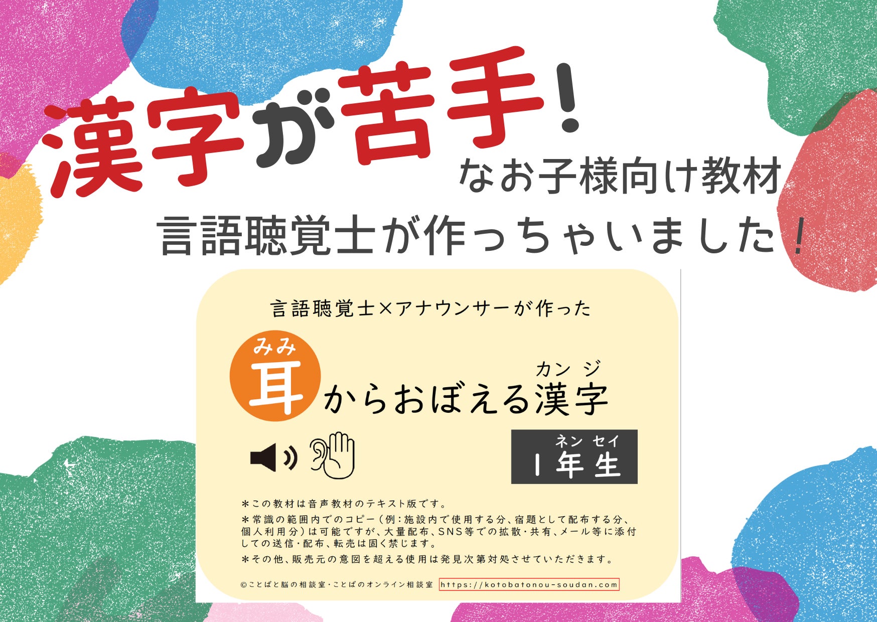 その支援の一環として、読み書き障害の子どもたちが特に苦手とする漢字学習を支援する音声教材「耳からおぼえる漢字」シリーズを開発、インターネット上で無料配布しています。