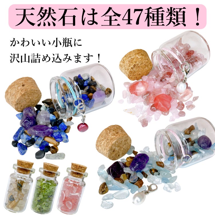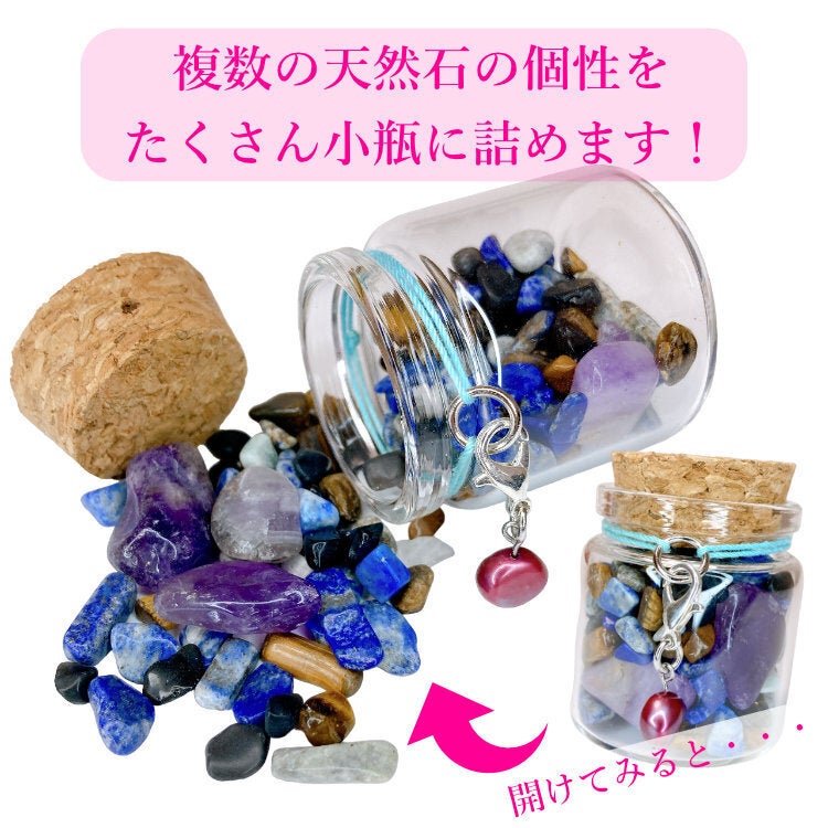 そんな見ているだけでも楽しい、持っているだけでも幸せな気持ちになれる天然石を一人でも多くの人に届けたく、願いを込めて天然石ボトルをつくりました。