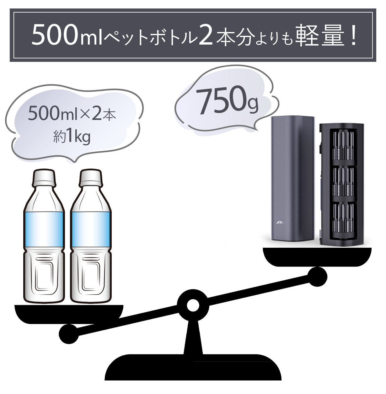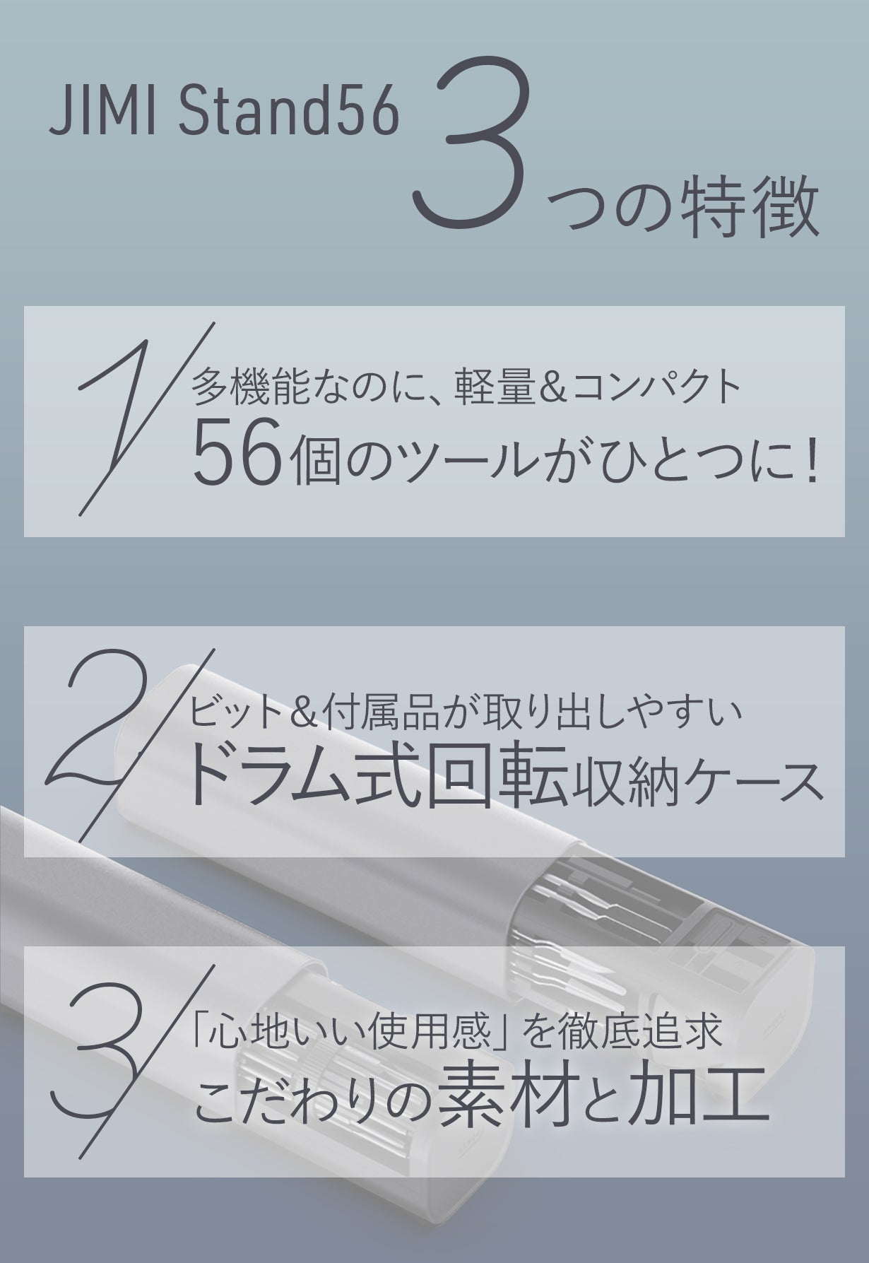 JIMI Stand56はわずか750g! ペットボトル2本分よりも軽量です。さらに64.4ⅹ64.4ⅹ203.5mmのスリムデザインで荷物を圧迫しません。