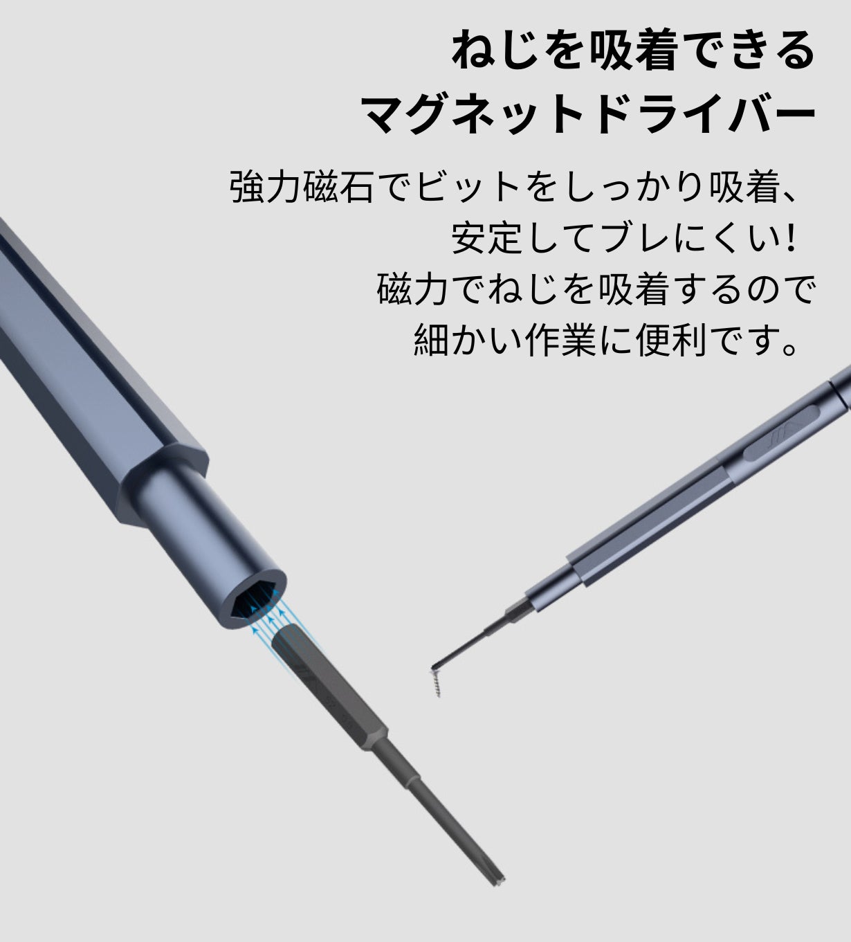 精密ドライバーでの作業は小さいねじも多いので、ねじを吸着して保持しておけるマグネットドライバーで作業効率UP!