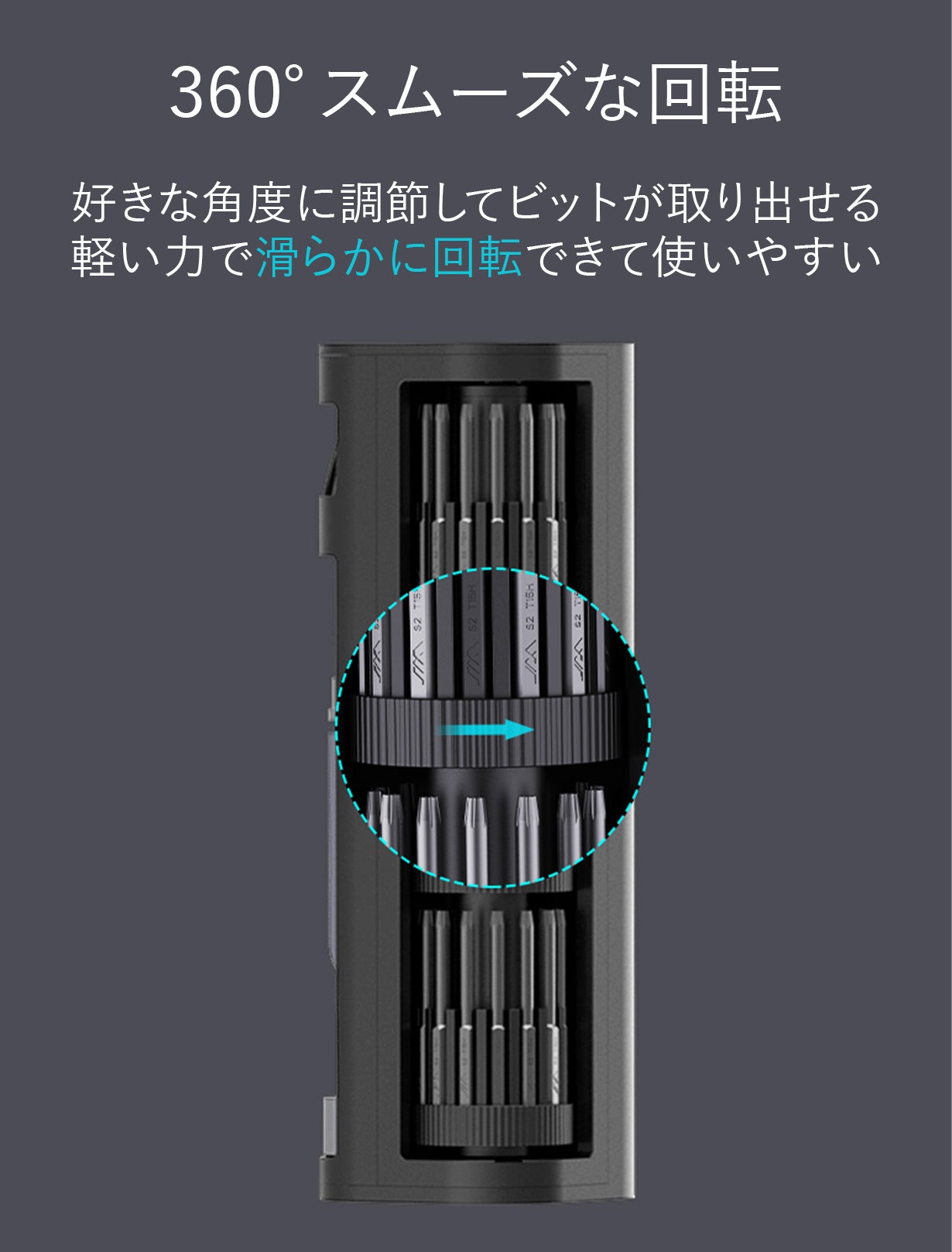 360度回転させられるため、全てのビットが取り出しやすく、作業効率UPに繋がります。