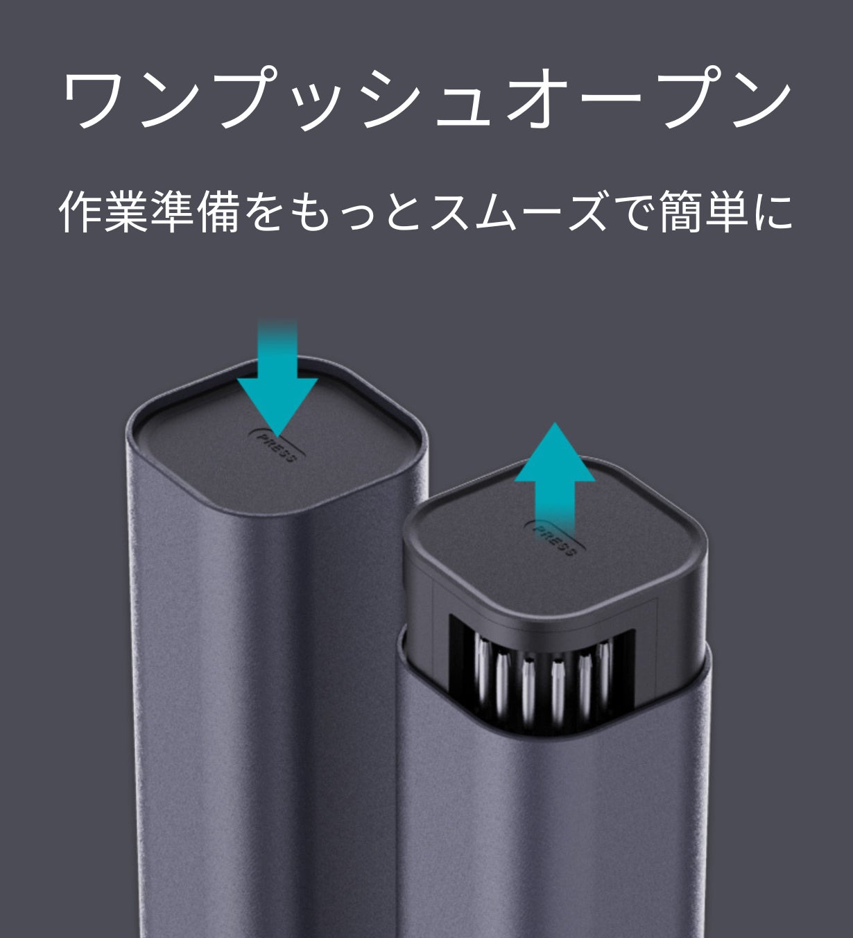 ワンプッシュ開閉が可能なので、素早く開けてスピーディーに作業が始められます。