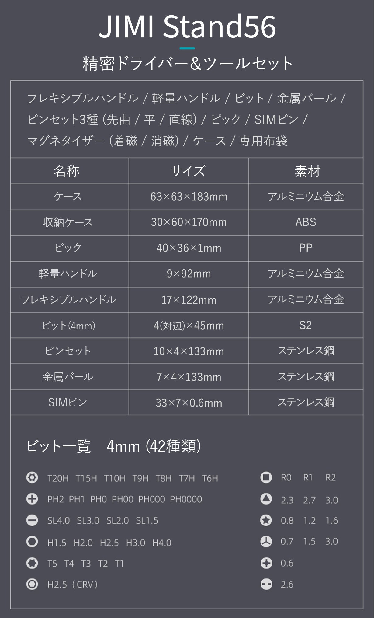 DIYやメンテナンスに便利な精密作業用の各種ツールを付属。