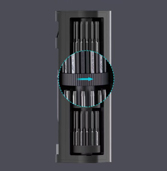 また、デザイン面でもJIMI Stand56は優れています。わずか750gと軽量で、スリムなデザインはデスクに置いてもスッキリ美しく、持ち運びもしやすいです。ビットと付属品は回転収納ケースに収納されており、360°回転させられるため、取り出しやすく、作業効率が向上します。プッシュオープン式の収納ケースも便利で、作業準備がスムーズです。