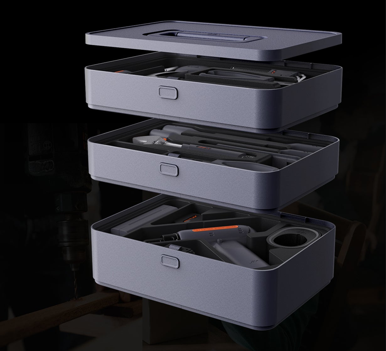 JIMIBOX X3-ABIは、JIMIBOX X1-AセットやJIMIBOX X1-BセットやJIMIBOX X1-Iセットが組み合わさったコンボセットです。日常でよく使う基本的なツールセットを高品質に変えてくれるX1-Aセットと、日常DIYの幅が広がるX1-Bセット、またX1-IセットはDIYや修理作業に必要なあらゆるツールが揃っており、多種多様な作業をサポートします。このセットは整理と収納が簡単で、美しさにこだわった洗練されたシリーズ専用ケースも付属しています。