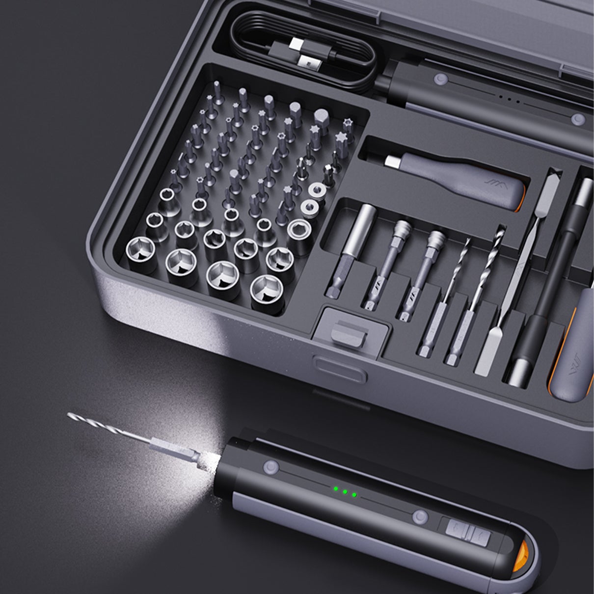 JIMIBOX X3-ABIのIセットは、驚くほど多機能な機能を誇っています。ドライバー、ドリル、ラチェットの組み合わせで、このセットはさまざまなタスクのためのゴートゥーソリューションになります。異なるツール間を切り替える手間から解放されて、1つの多目的セットを使って簡単にどんな仕事でも処理できるようになります。