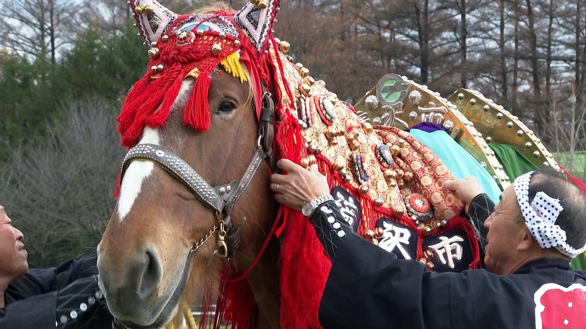 自慢の愛馬を着飾る装束は、その家で代々受け継がれ、家族や地域で製作・修繕が行われてきました。