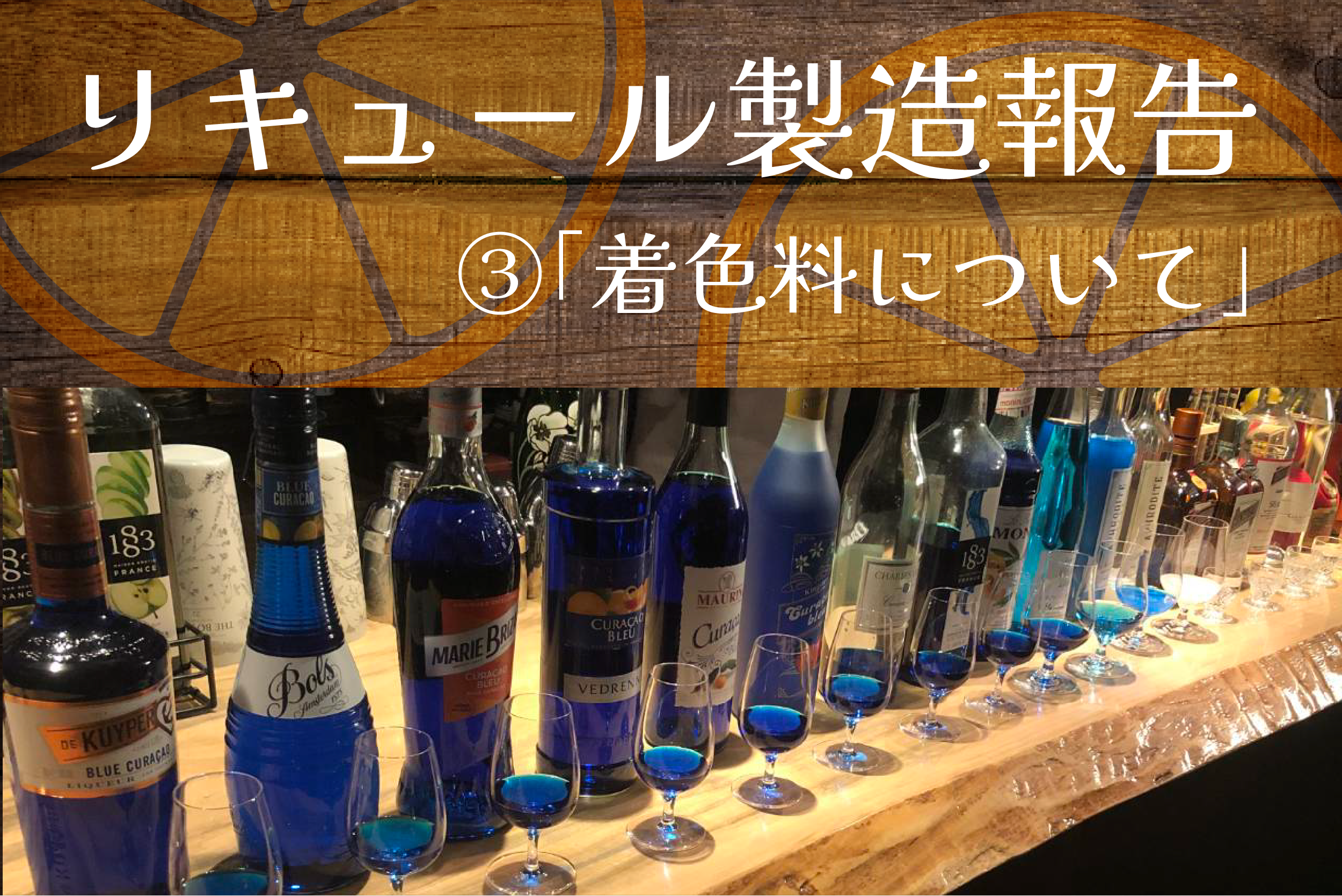 前回のリキュール製造報告②では仕込みについて紹介しましたが、今回は先だってリキュールの着色について紹介致します。「SHIRAHAMA Clssic Blue Curaçao(シラハマ・クラシック・ブルーキュラソー)」は名前の通り青い色をしたお酒です。今回は少々裏話的な内容ですが、その青い色についての内容です。お楽しみ頂けましたら幸いです。ブルーキュラソーの着色料についてブルーキュラソーはその青が最も印象的なお酒で、青いカクテルを作るためには必須のお酒です。青い色は海のイメージや、幻想的なイメージで用いられることが多く、Barでは欠かせないリキュールの一つです。青い色というのは自然ではなかなか珍しい色ですが、その青はどのようにして色付けされるのでしょうか?ブルーキュラソーの青については一般的に「青色1号」等の合成着色料が用いられており「SHIRAHAMA Clssic Blue Curaçao」でも使用する予定です。前提として天然の着色料には青い色のものも存在しますが、あえて合成着色料を使用するのは何故なのでしょうか?Cocktail Bar Ravenで行われたブルーキュラソーの研究会天然色素の弱点私達も疑問に思い事前に買い集めて調べてみたところ、アルコールやpHなどの条件で状態変化が起きやすく変色やダマになってしまったり、光や熱によっても劣化し易いことがわかりました。前述の通りブルーキュラソーは「青いお酒」であることに意味があるので、そもそも色が劣化してしまったり炭酸水やレモン果汁等で色が変わってしまうことは避けたいのです。そのため天然色素は不適という結果になりました。下図は例として、青いハーブティー等で有名なバタフライピーにレモン果汁(酸性)を加えた時の色の変化です。酸を加えることで、青→赤紫色に変化します。レモン果汁のようなpHの低いものに限らず、炭酸水のような弱酸性のものを加えても同様の変化が起こります。次回の製造報告次回の製造報告は「キュラソーの種類について」お届けする予定です。