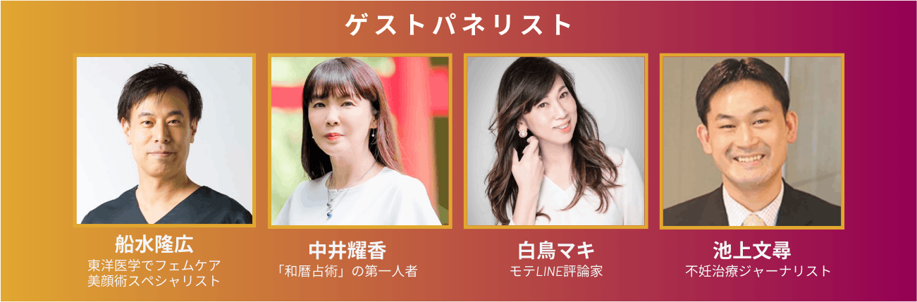 東洋医学でフェムケア・美顔術スペシャリスト、「和暦占術」の第一人者、モテLINE評論家、不妊治療ジャーナリスト、そしておかざきななが、皆様と意見を交わしながら『人生100年時代の新しい生き方』を模索します。ここでしか聞けない裏話も聞けるかも…!?