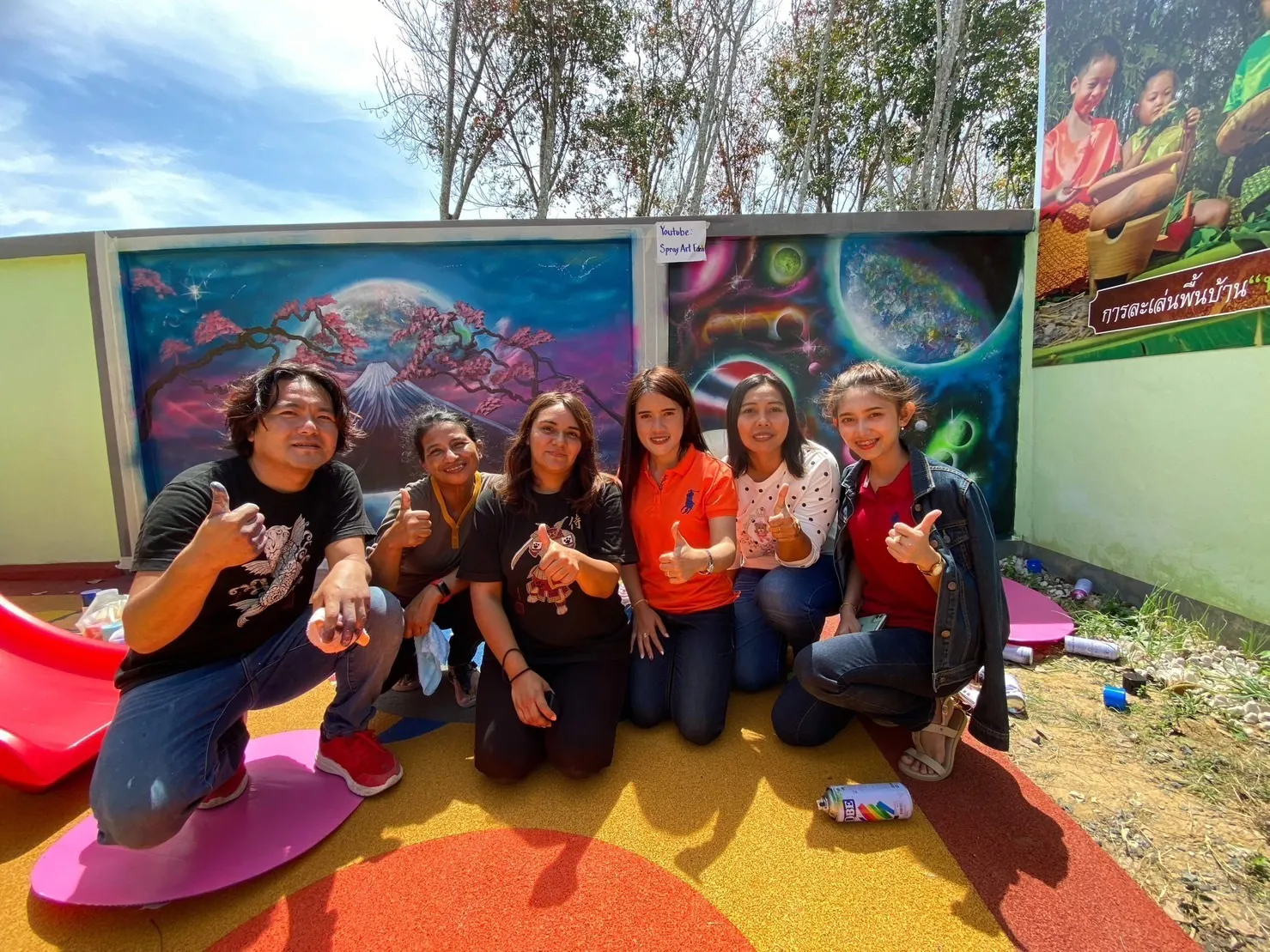 エデン梅澤氏は、以前から世界中でボランティア活動としてスプレーアートLIVEパフォーマンスを成功させた経験もあり(写真参照)その時に世界各国の子ども達や若者に希望を与えた感動体験があります。その想いを今回は、ミャンマーの子ども達の笑顔と希望へと紡いでいき、新しい発案として「アートのチカラ」をお借りいたします。