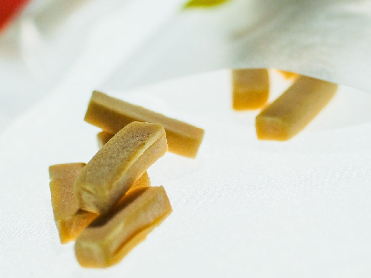 私たちはより安心して噛み続けられるように、100%植物由来の原材料のみによるチューイングガムの製造を目指して最終段階に入っています。