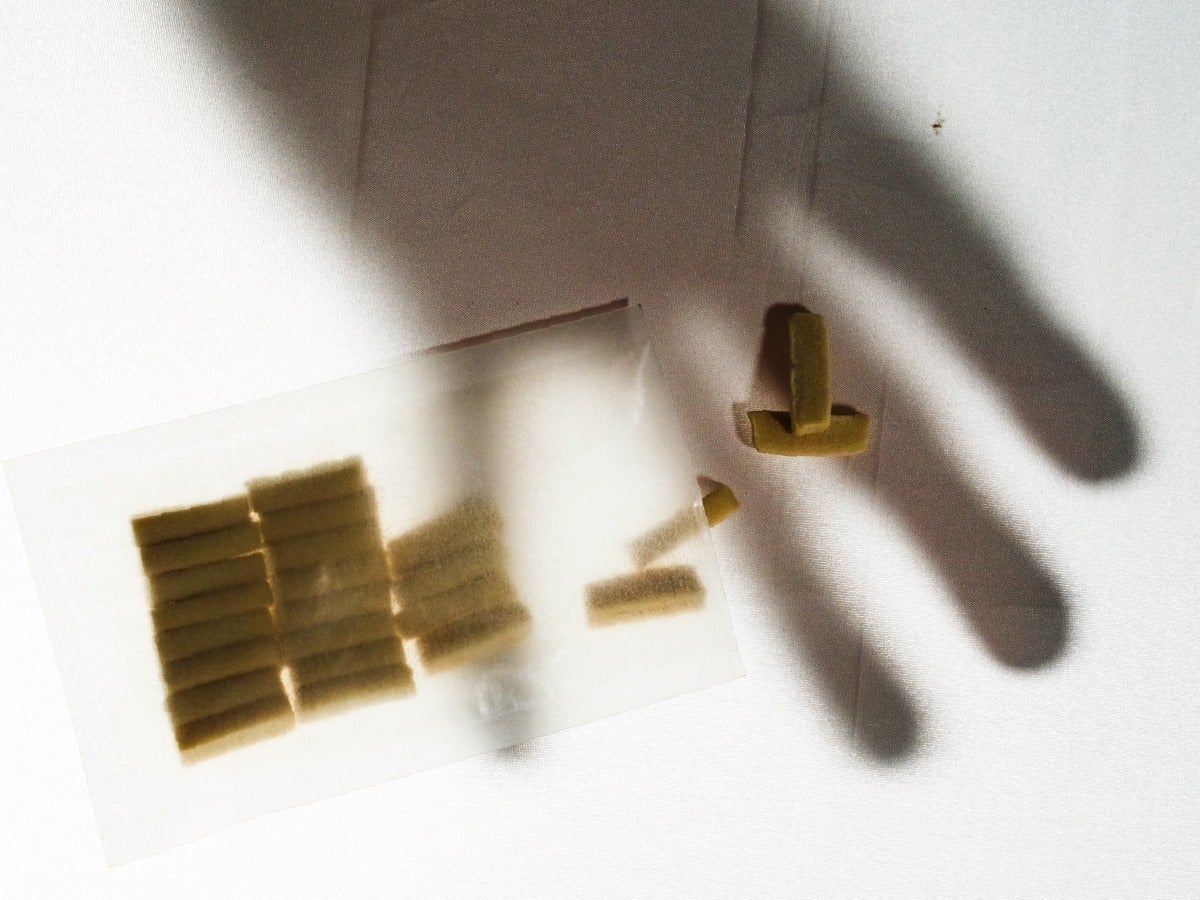 ガム1粒は0.7g、形状は直方体です。