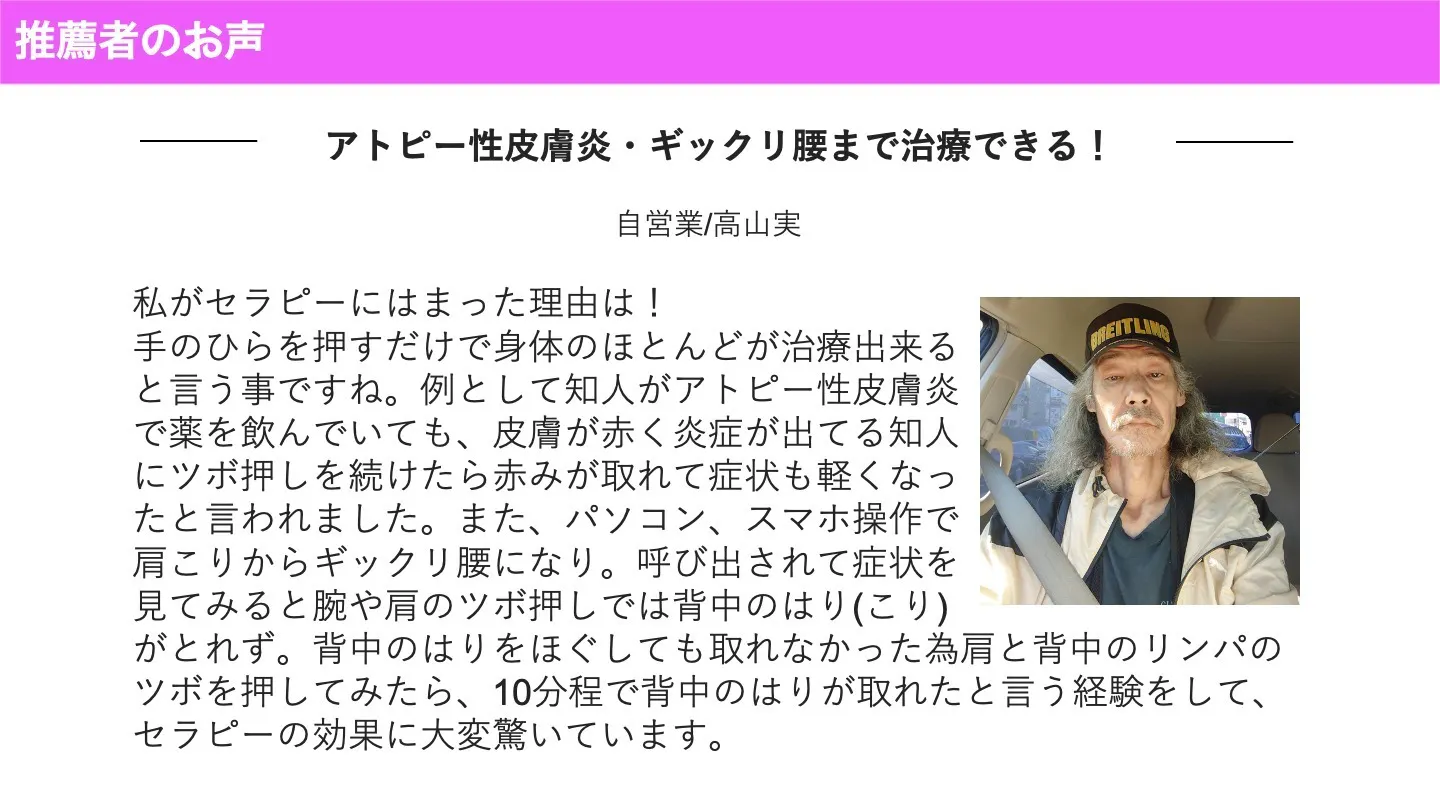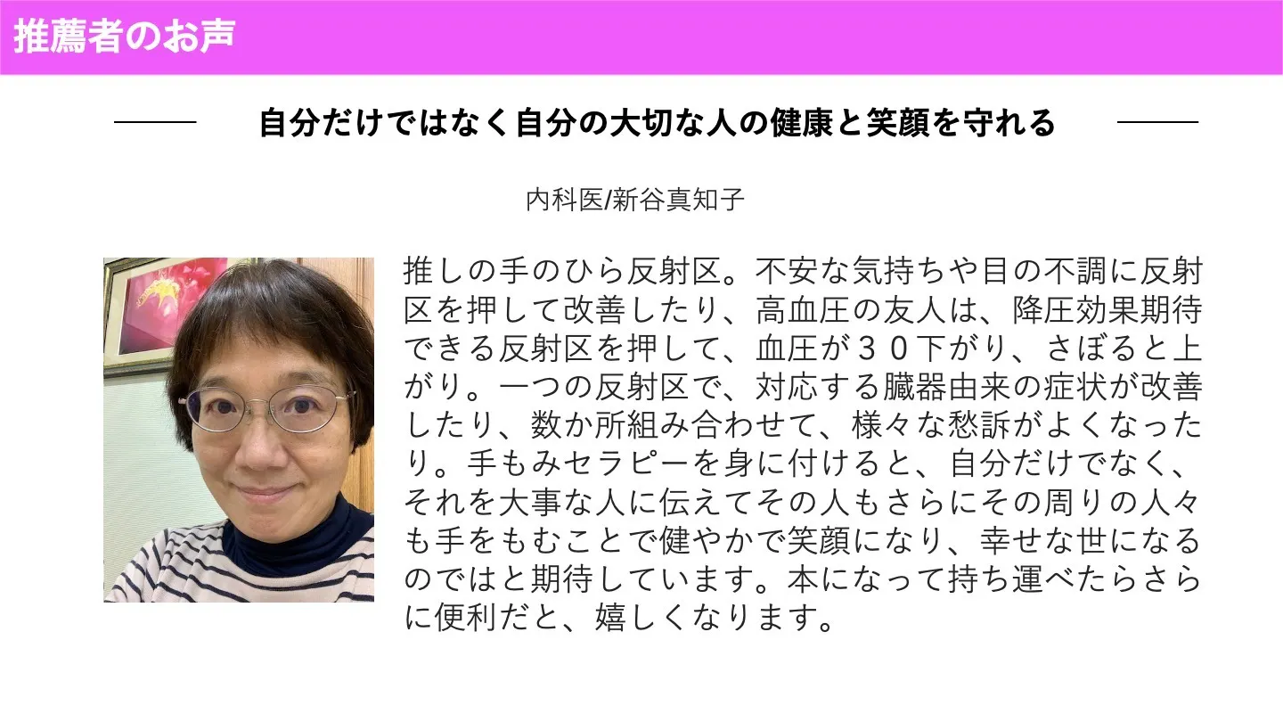 この手もみセラピーを知ってほしいと思った私は、