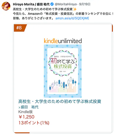 現在、5月に作成した本は、Amazonで販売(電子書籍・ペーパーバック)しています。「株式投資・投資信託」の新着ランキングで8位になったこともあります。上位にランキングされ大変嬉しく思ったものです。