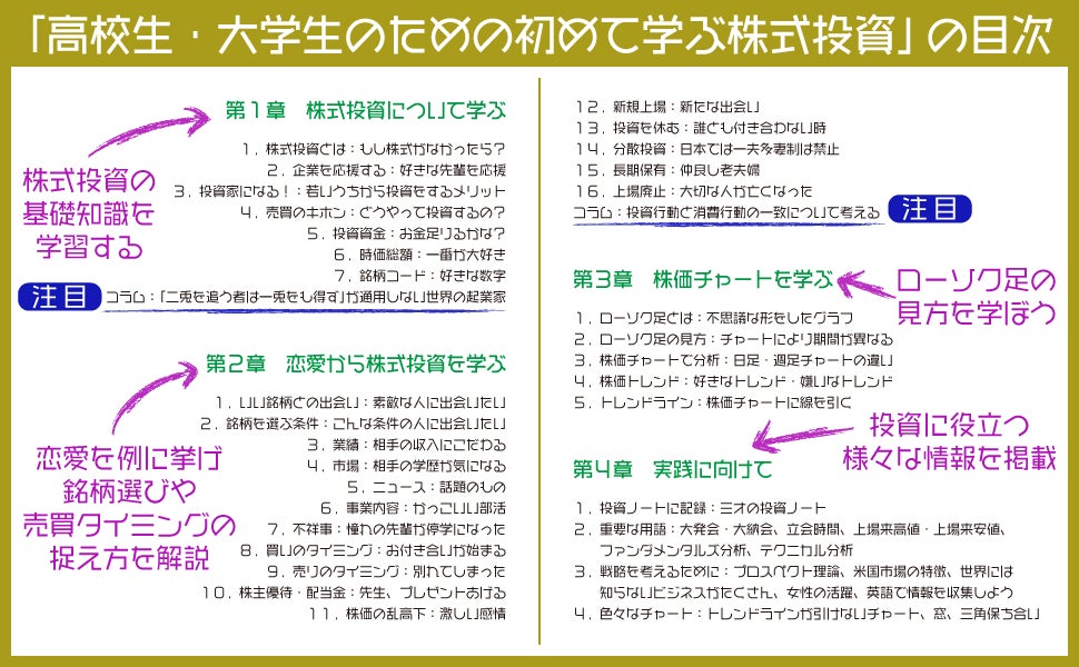 現在Amazonで発売中の「高校生・大学生のための初めて学ぶ株式投資」の概要は以下をご覧ください。
