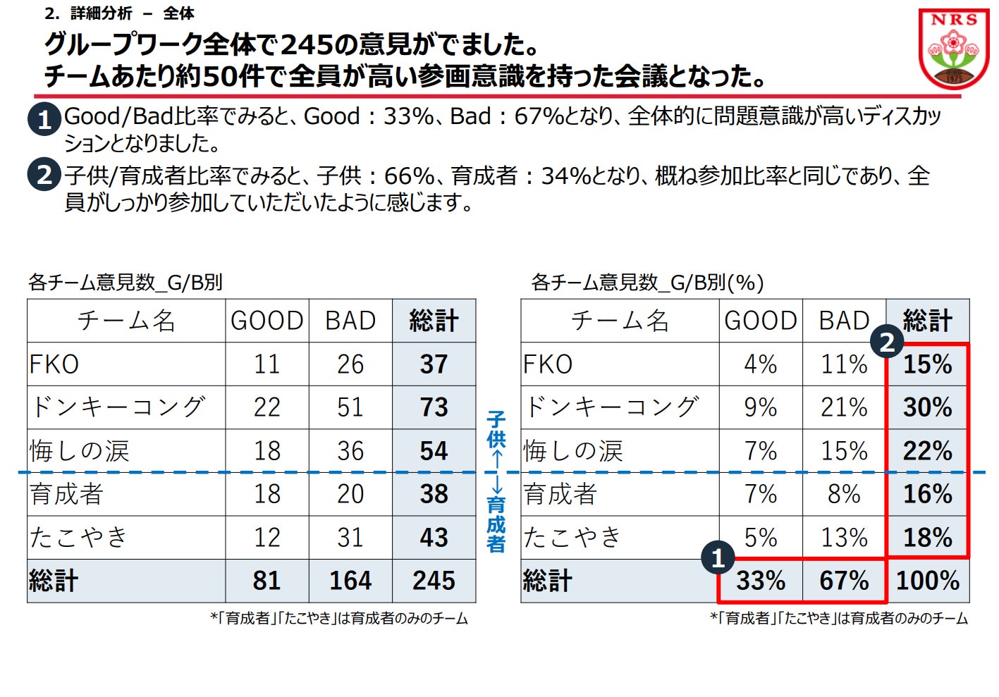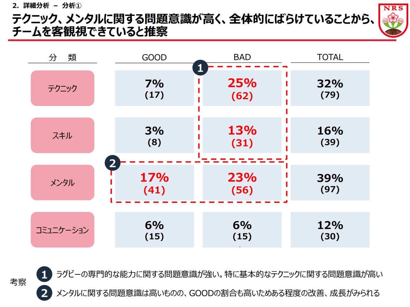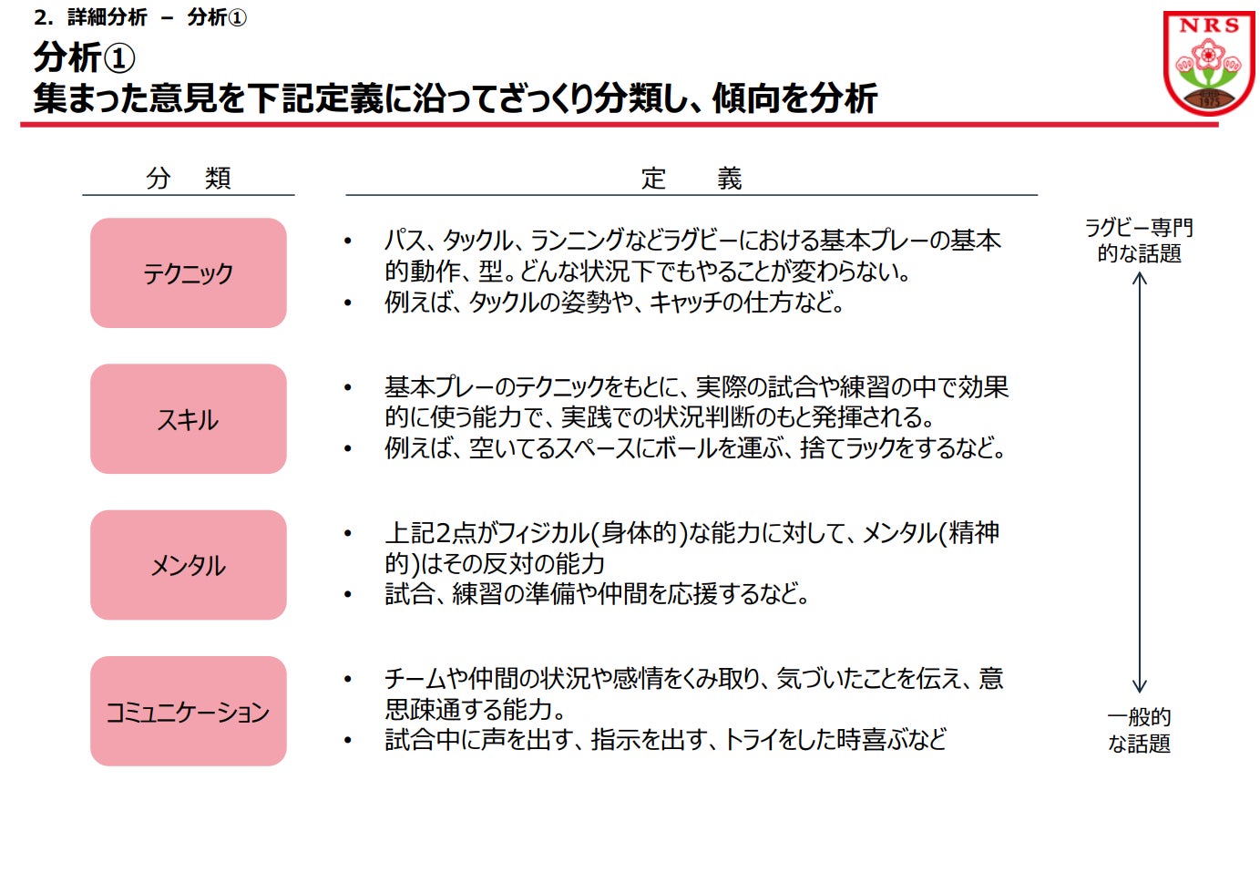 これはまとめの資料の一部になりますが、選手、育成者、コーチにとってとても良い経験になりました。お互いが考えていることを知るために、考えて、書いて、話すというプロセス、そして自分の言葉で話すことも難しさも学ぶことができました。