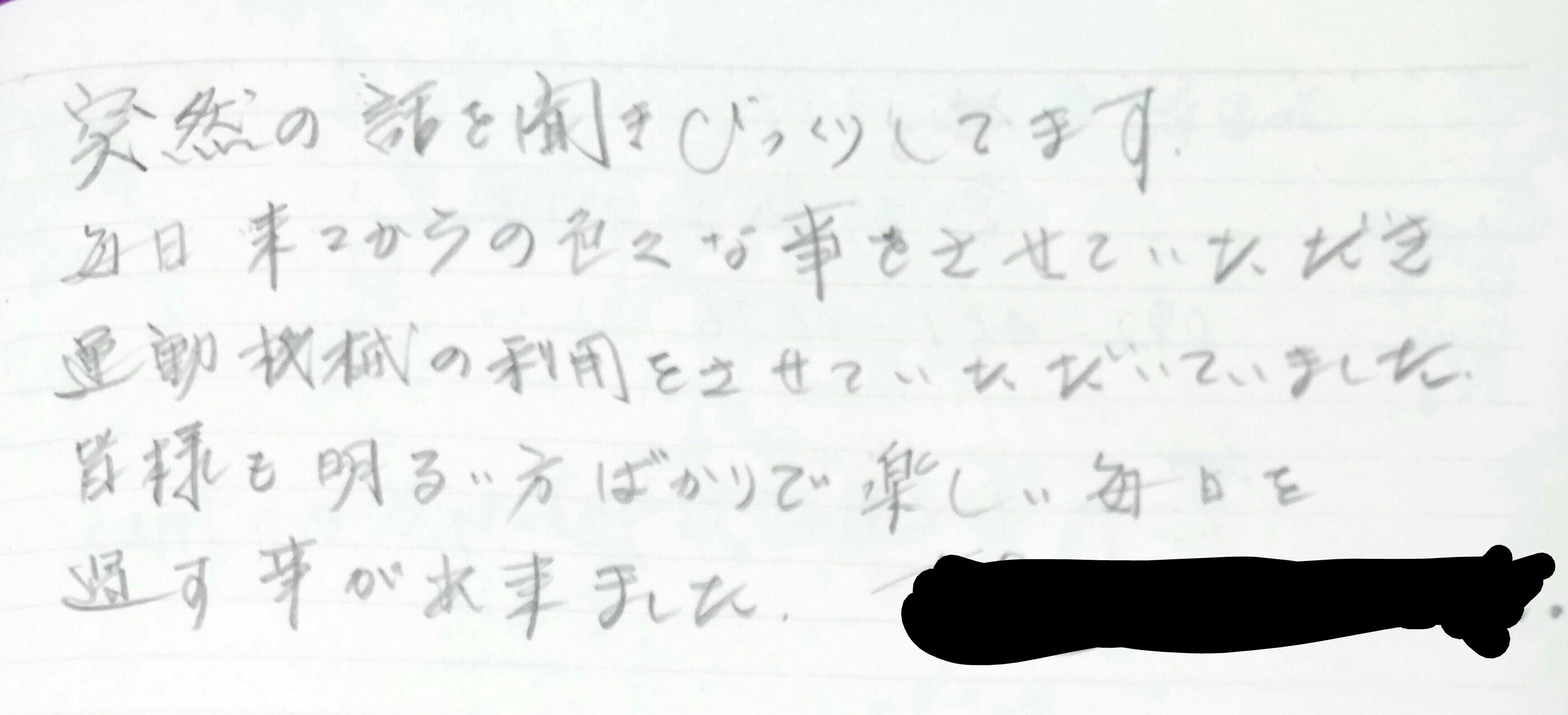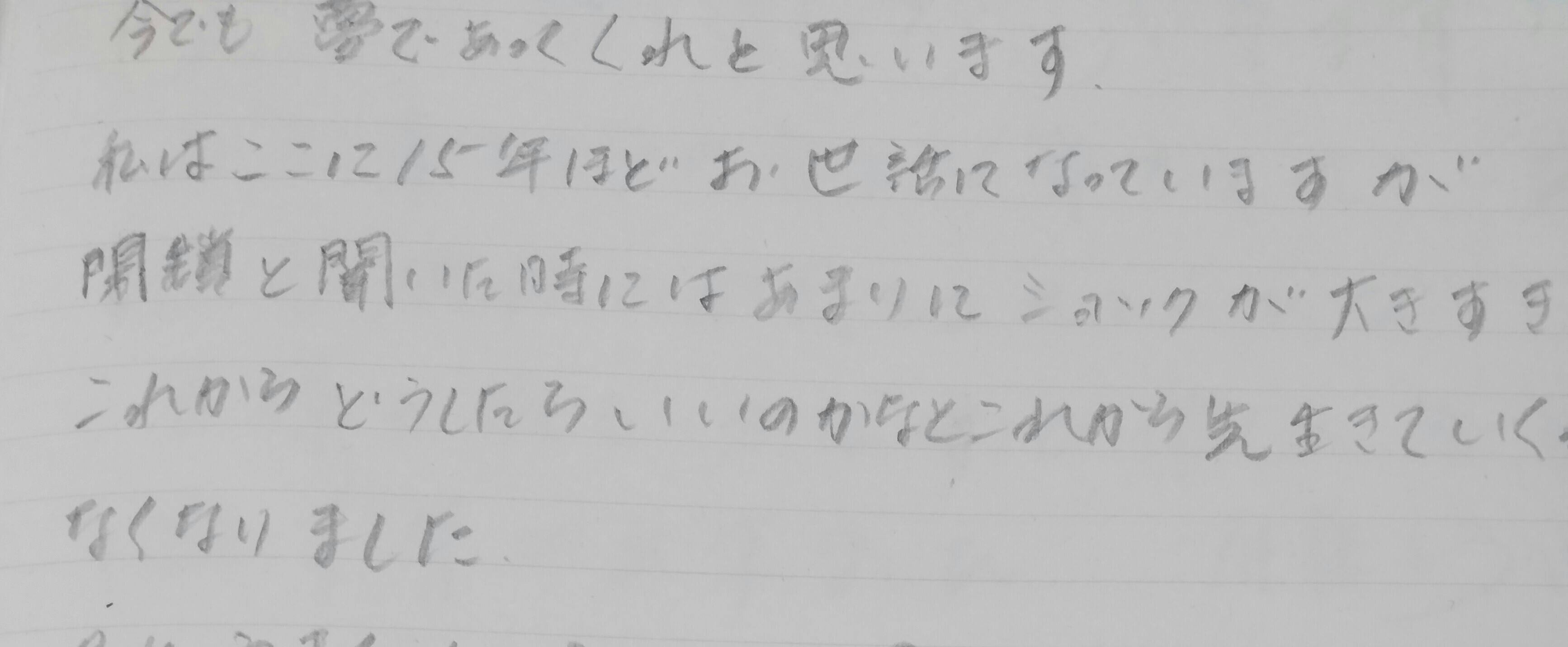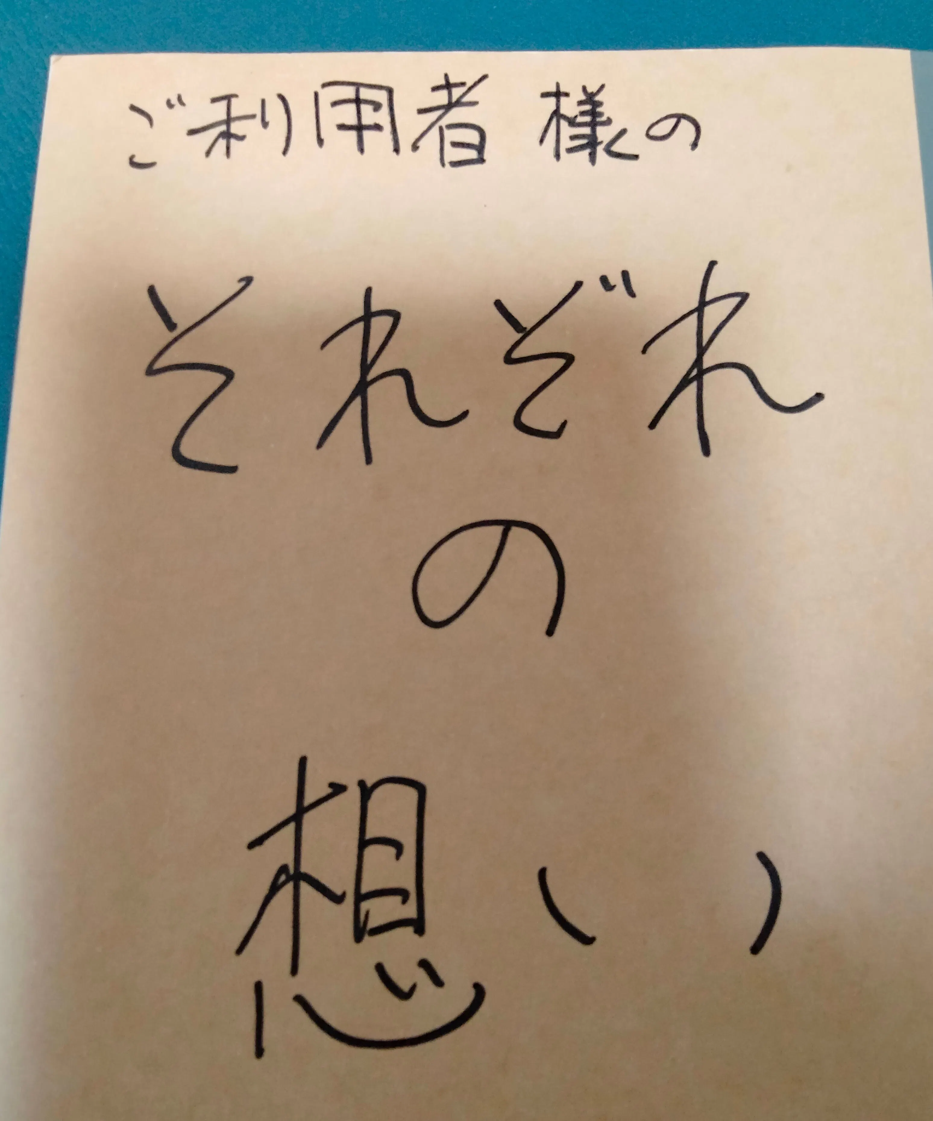 たくさんの利用者様がその時のそれぞれの想いと題し、お気持ちを書いてくださいました。その一部抜粋です。