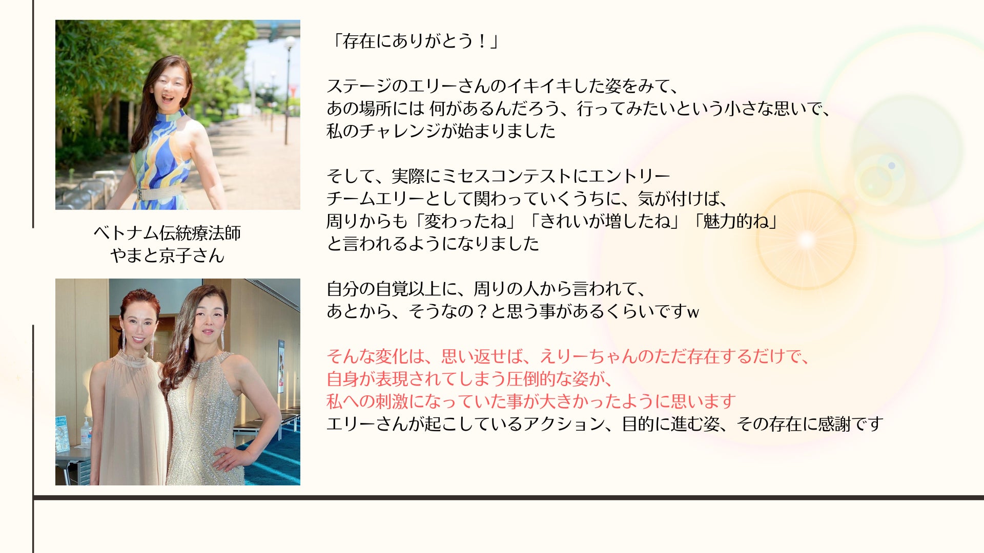 「ミセスコンテストでグランプリをとったよ」