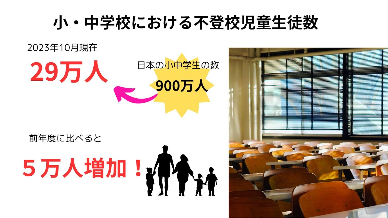 文部科学省の調査によると、小・中学校における不登校児童生徒数は29万人。前年度から5万人(22.1%)増加し、過去最多となったそうです。