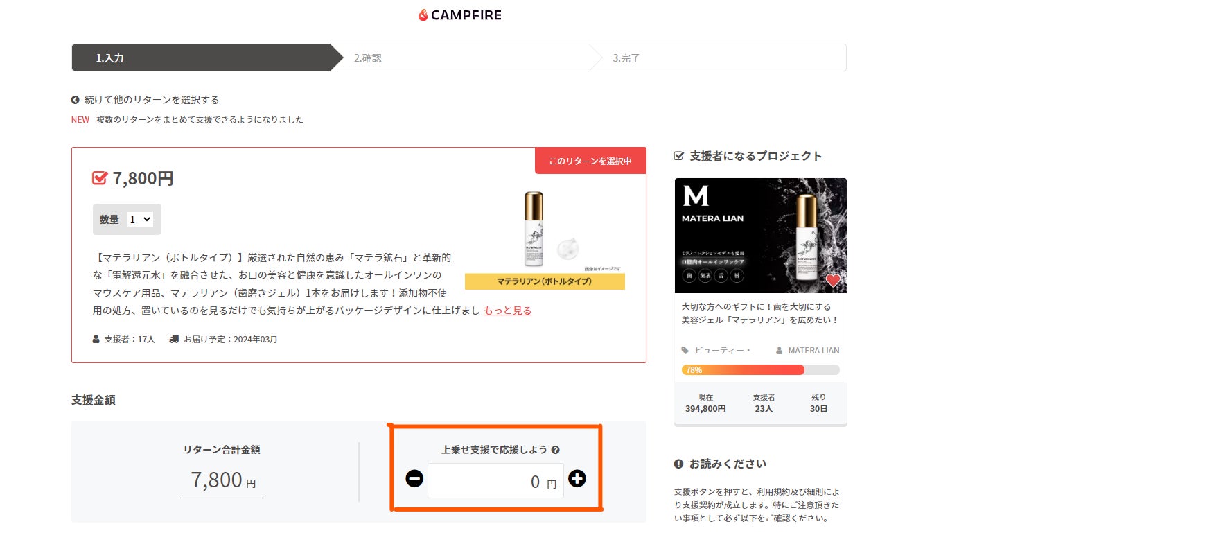 その場合は、上乗せ支援で応援しようという機能があります。なんと便利!!
