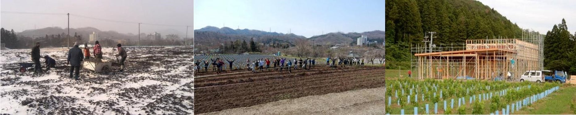 (左から:2013年 農地確定 / 2014年春 葡萄の植樹 / 2014年 ワイナリー建設)