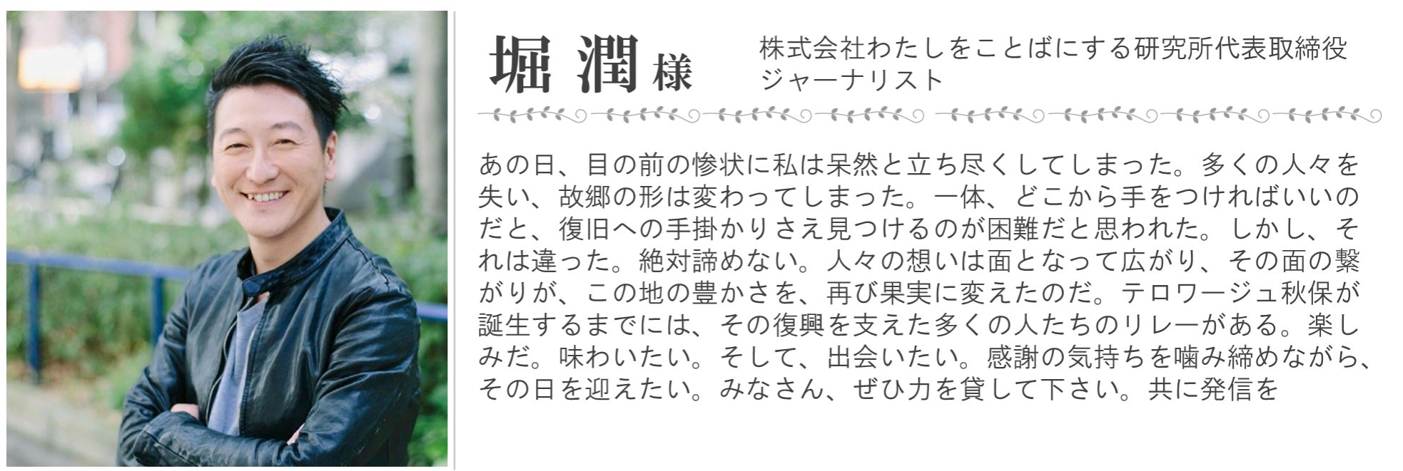 東北を食で盛り上げていく、その担い手の一人として、皆様のご支援を心よりお待ち申し上げます。
