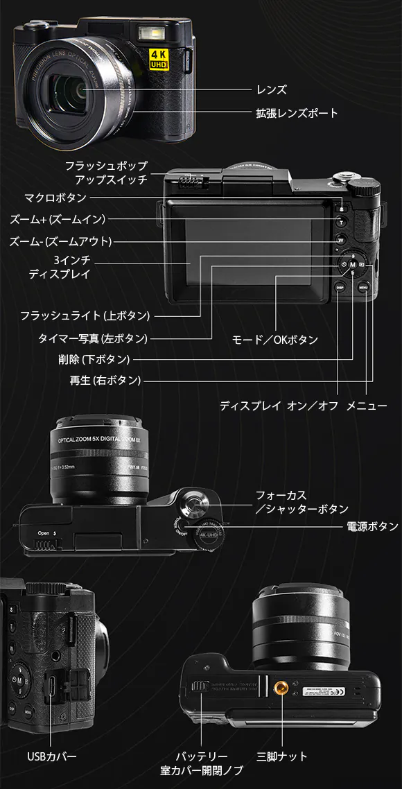 「AMKOV R5」は、静止画(DC)と動画(DV)機能を組み合わせた多機能光学ズームカメラです。