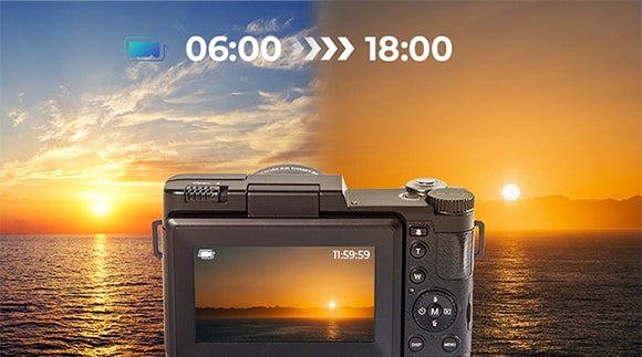 日の出、浮き雲や都会の交通渋滞など長時間で録画したものを短い動画に圧縮できます。