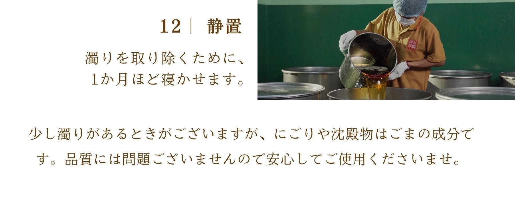 "1度のみ"搾るごま油。
