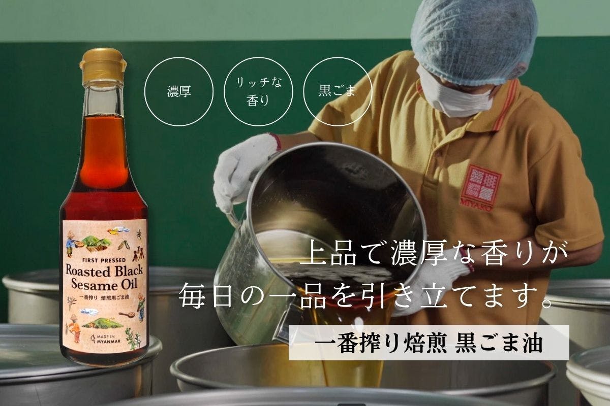 日本の焙煎方法で、1番搾りを使用したごま油は、ミャンマーで当社が「初」としての販売になります。