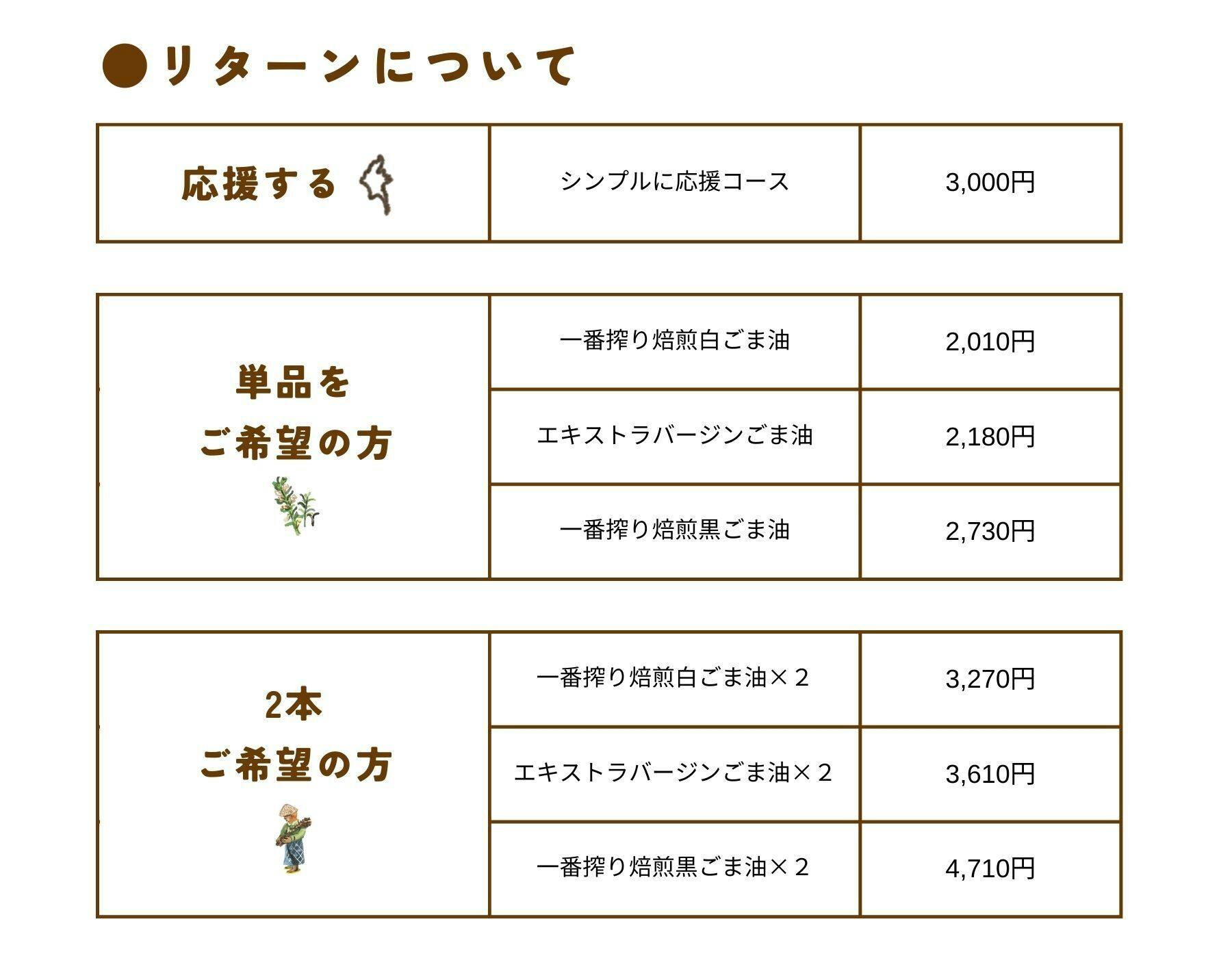 黒ごま油が欠品のため、本日~ご支援いただく場合は