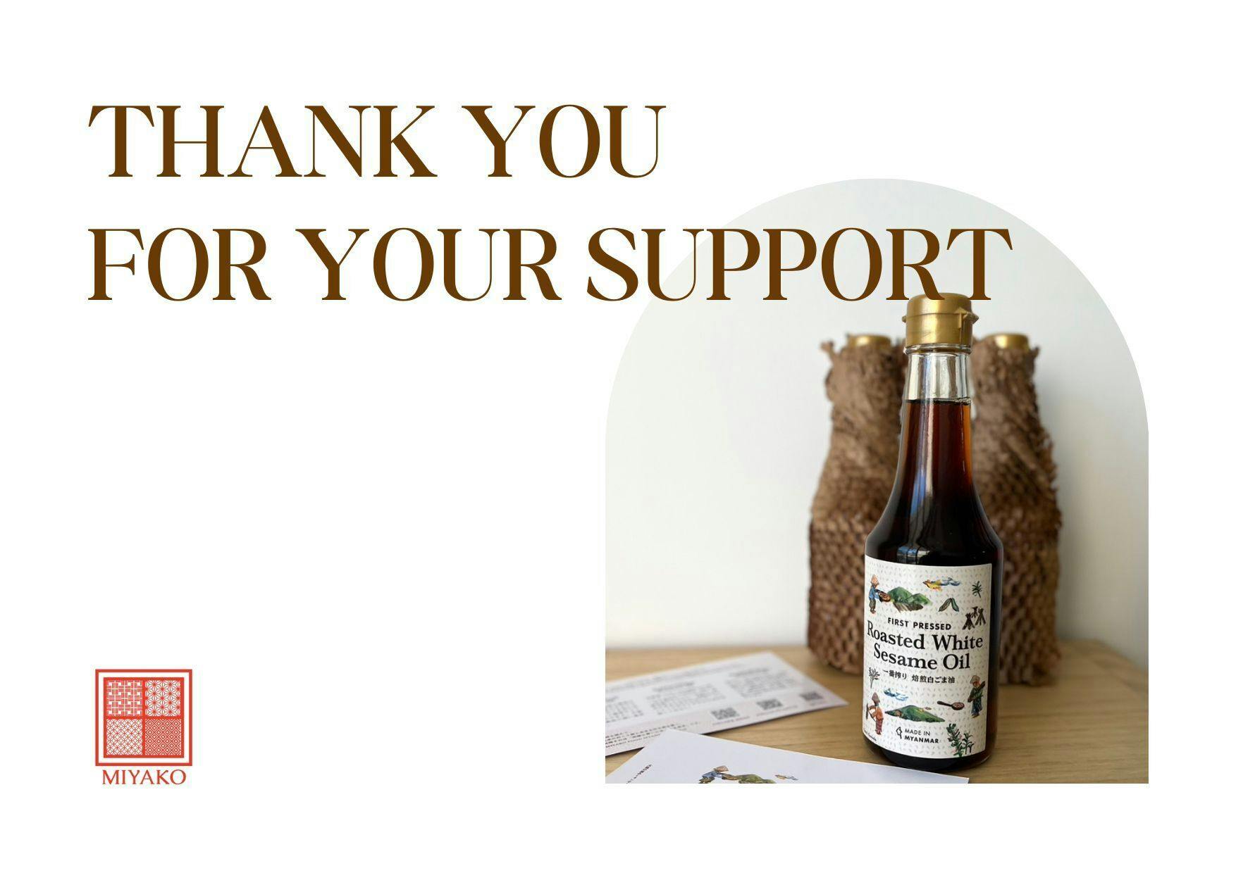 2024/04/28 10:30サポーターの皆様へいつもご愛顧いただき誠にありがとうございます。先日、発送いたしましたごま油はいかがでしょうか?プロジェクト終了後、4/17都内にオープンした東急プラザが運営する新商業施設『ハラカド』ではグランドオープン当日に完売となり、大変多くの反響をいただきました。みなさまの応援、そしてお知り合いやSNSでのシェア・拡散、ご協力いただきありがとうございます!現在全ての商品が入荷待ちでして、5/2㈭より再販売を開始させていただきます。ぜひお渡ししましたクーポンをご利用くださいませ。お手元にない場合はメールより送付いたしますのでお気軽にお問い合わせください。info@miyakofood-mm.com またこの度、ミャンマー生産者との持続した取引を実現するために再びプロジェクトに挑戦します!(社会課題解決に取り組んでいるfor good!というサイトを利用いたします)https://for-good.net/project/1000686【※5/25まで】都市部の活気は取り戻しつつありますが、実はそれは表面上だけであり17年に24.8%だった貧困率が23年に49.7%までに急速に悪化しています。ご支援者さまにはリターン品として通常販売しているごま油ではなく、一部戦闘地域でもあり、ケシ栽培も広がるミャンマー東部に位置する【シャン州のごま】と【貴重な黒ごま】にフォーカスし、エキストラバージンごま油にしました。ミャンマー東部【シャン州】で収穫できるごまは、通常のごま粒と比べて約2倍のセサミンが含まれているのが特徴です。ごま本来の香りとナッツのようなうま味がバゲットやサラダなどによくあいます。インド伝統医学のひとつであるアーユルヴェーダで、古代より使われている【黒ごま】エキストラバージンごま油。中々市場に出回っていない貴重なオイルですが、体験したことがない黒ごまの爽やかをご賞味いただけます。卵かけご飯やバニラアイスやヨーグルトにかけるだけで上品さが増しおすすめです。 その他リターンには“ミャンマーの作り手の魅力を広めたい”と活動されるみなさまの商品や、-【新商品】エキストラバージンごま油を楽しむセット-現地ミャンマーと繋ぐごま油搾油実演会-ごま油×アーユルヴェーダのコラボもございます!集まった資金は7/13,7/14下北沢ボーナストラックで開催するミャンマーの魅力を発信するイベントの運営費用に使用します。イベントで実現したいことがあります!詳細はぜひページ内をご覧くださいませ。 https://for-good.net/project/1000686【※5/25まで】最後までお読みいただきありがとうございます!!▼ONLINE SHOPhttps://miyakofood-mm.com/▼母の日ギフト一覧https://miyakofood-mm.com/pages/mothersday-gift▼FOLLOW US!https://www.instagram.com/miyako_food_myanmar.jp/ もっと見る