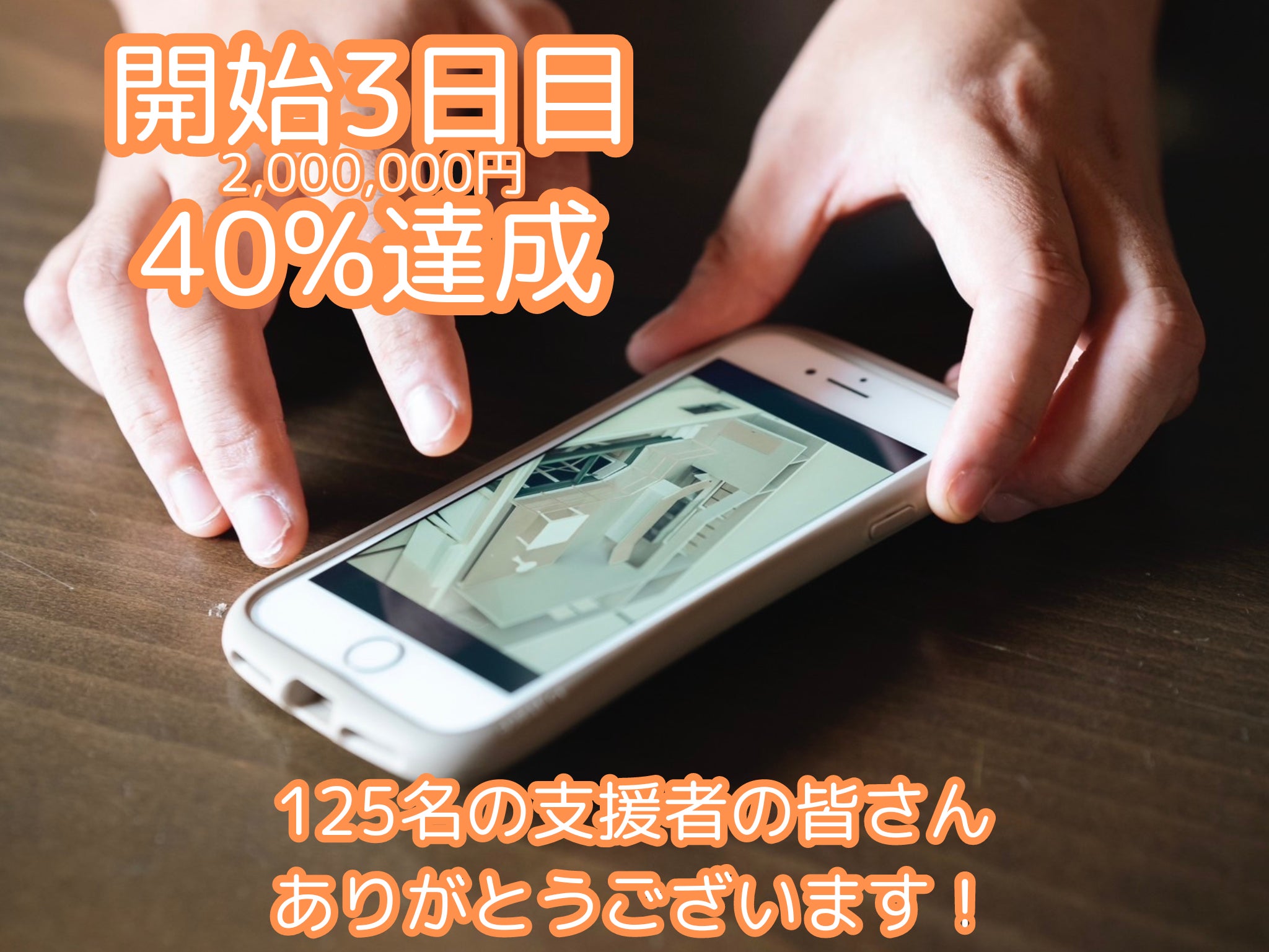 開始3日が経過し、2,000,000円40%125名の方にご支援いただいております。