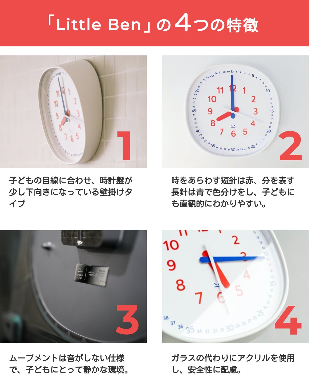 そこで、私たちは、子どもに時計の読み方を教えるには、何か工夫が必要だと考え、Little Benという時計を開発しました。