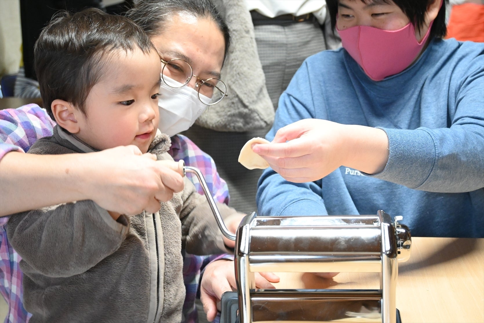 昔はパスタマシンで生地を伸ばして、切ってってやっていたんだよ!