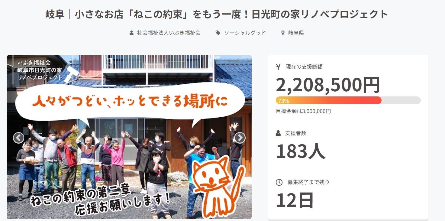 現在の支援総額2,208,500円、支援者数183人となりました!