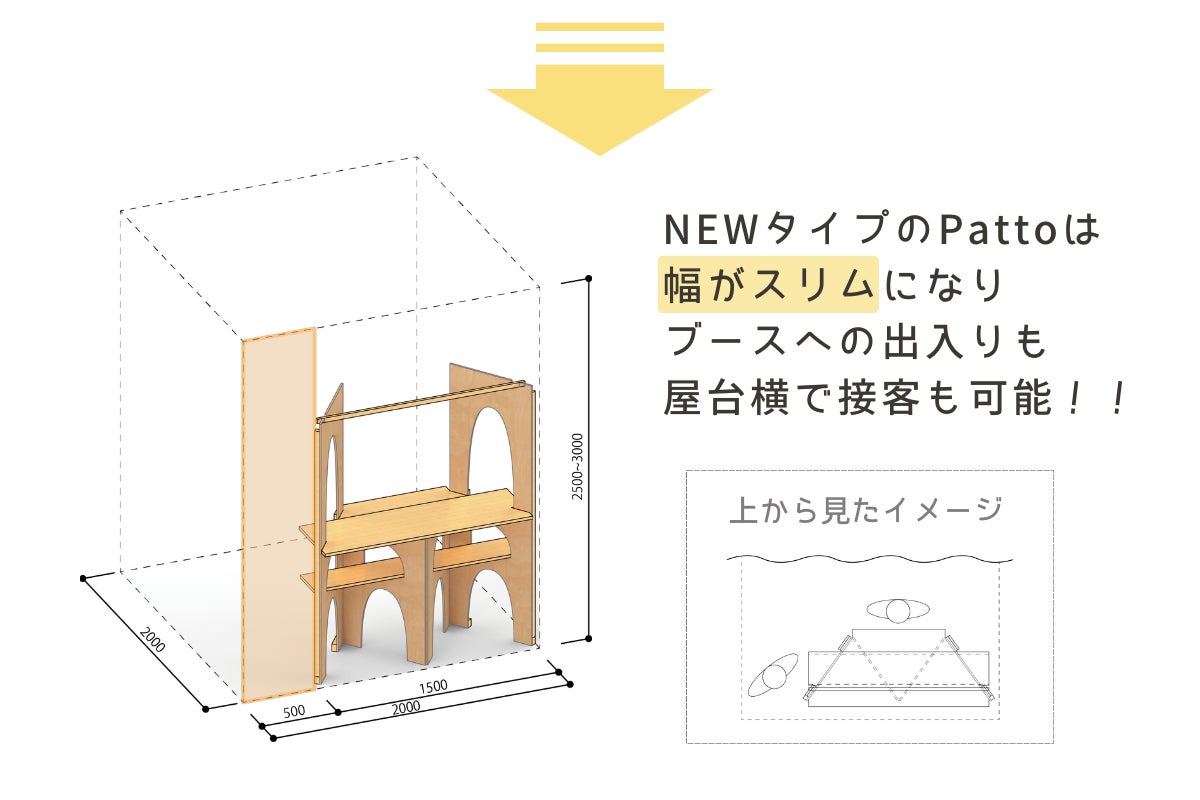 現行のPattoより幅が30cmスリムになったことで、屋台の横に立ち接客も可能となります。