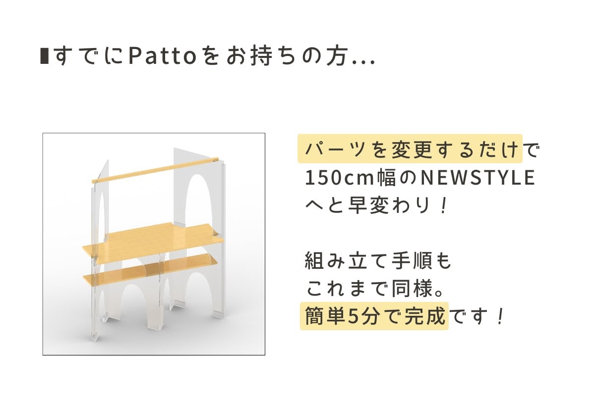 いただいた貴重なご意見を参考に既存のPattoオーナー様も使えるような商品をと試行錯誤を重ね、家具職人の技術を活かしつつ完成させたのがスリムタイプです。