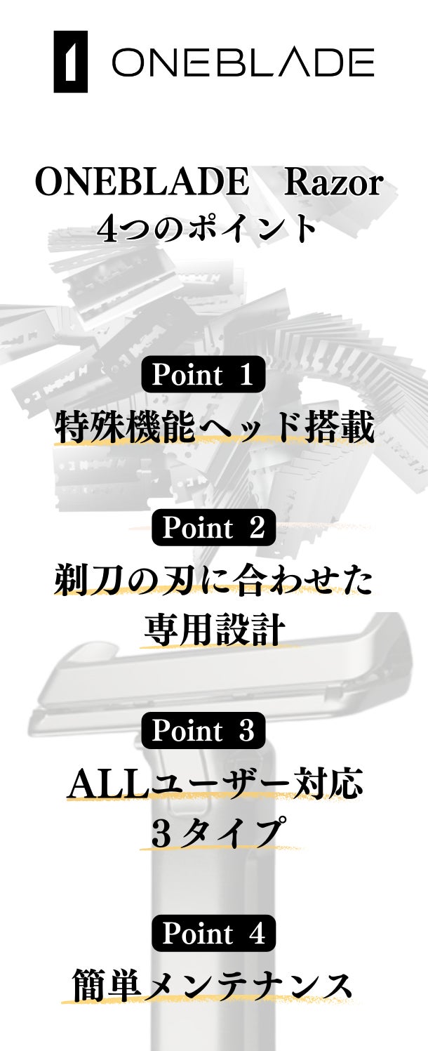 このことからも、日本市場におけるOneBladeの製品普及への期待値も高く、日本のユーザーの皆様へご愛用いただきたい!という強い想いをもっています。今回のプロジェクトはOneBladeとフェザー剃刀の高性能替刃が融合したこのシェーバーの卓越した性能を体験する絶好の機会となります。